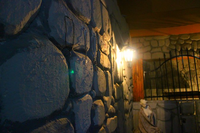 Сам квеструм находится не в центре – нужно на транспорте минут 15 ехать, затем заходить искать уже на месте, что самостоятельно сделать затруднительно – по факту тебя встречает человек и реально минут пять ведет по каким-то складам. Основной упор в позиционировании себя ребята делают на находящийся у них там же лабиринт (вроде на сайте написано, что порядка 700 квадратов) и перфомансы в нем для больших компаний. Сам квест это уже практически вильнюсский стандарт «вот комната алхимика, ваша задача найти философский камень, чтобы открыть выход».