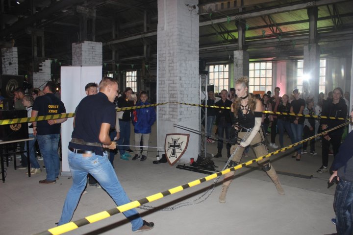 1. Ребята из Kventin подготовили самый настоящий ТИР с мишенью, у каждого была возможность пальнуть из пистолета и показать свою меткость. Второе задание было не из простых. Ваша задача была: надеть настоящий противогаз, опереться лбом на палку и побегать вокруг нее в течение 10 секунд, а потом, по команде схватить шапку, которая лежала на стуле. Сделать это не так уж и просто, потому что вестибулярный аппарат штука опасная:)